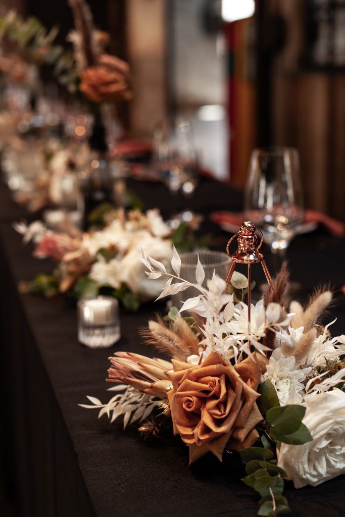 Wellentische mit Üppiger Dekoration in Black & Peach – Motorworld Böblingen