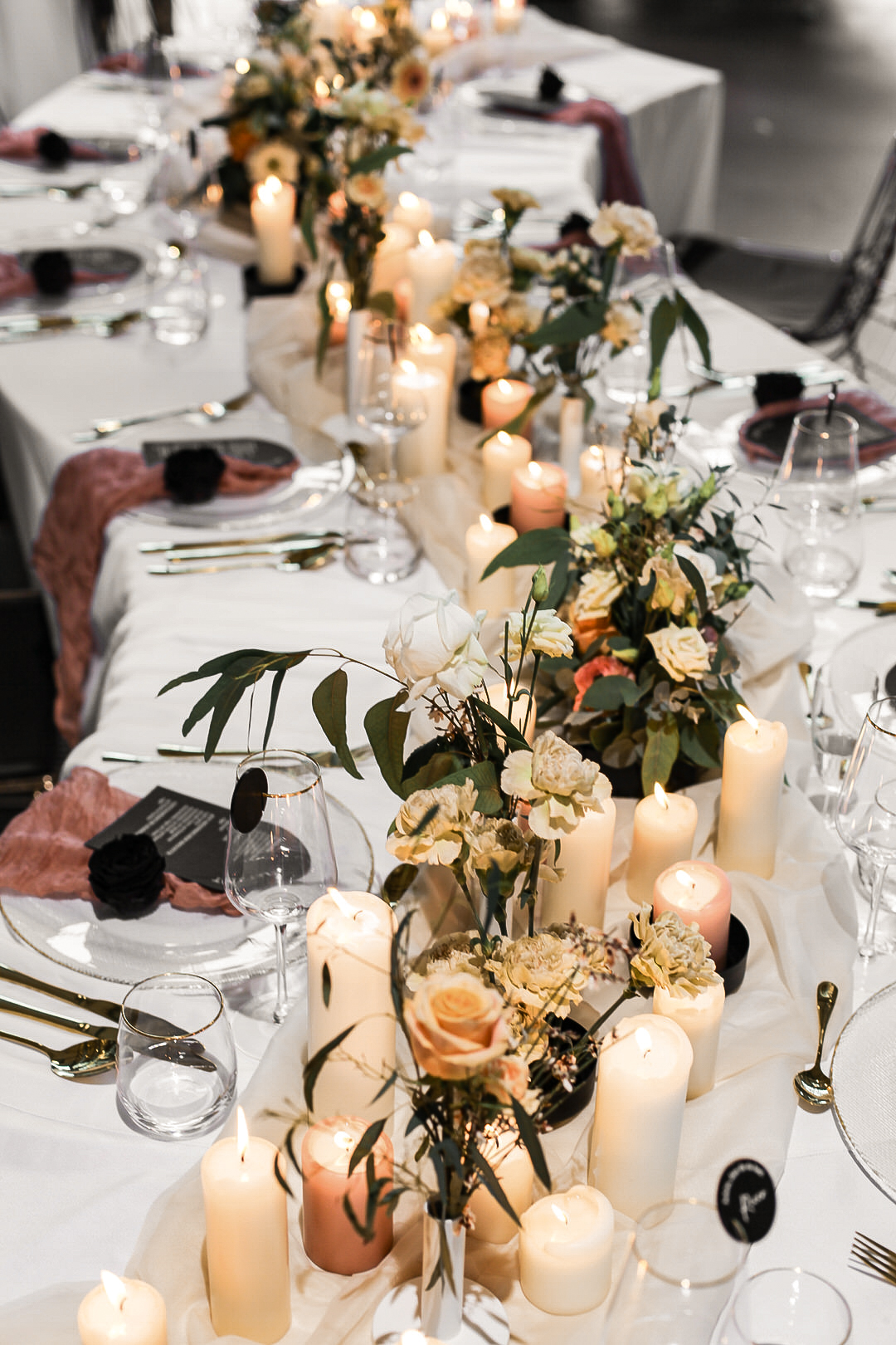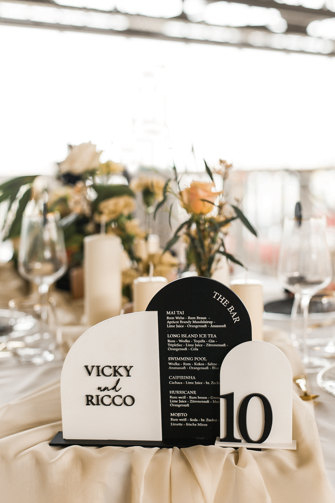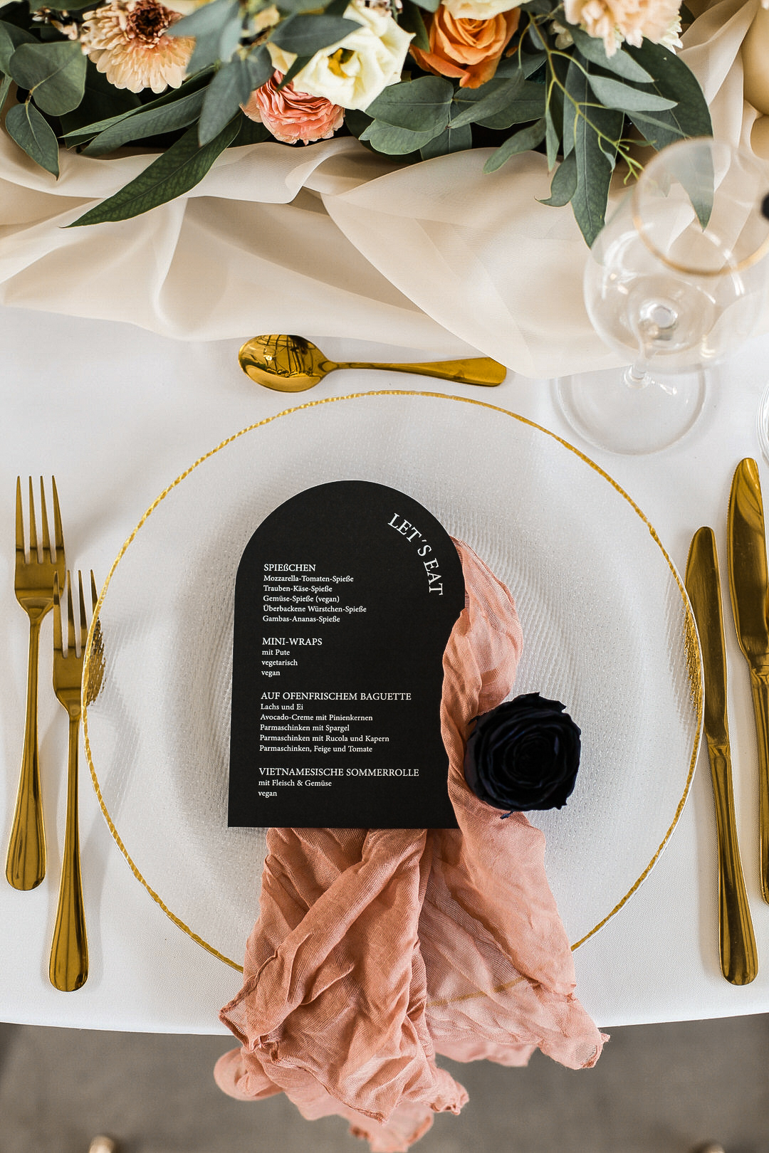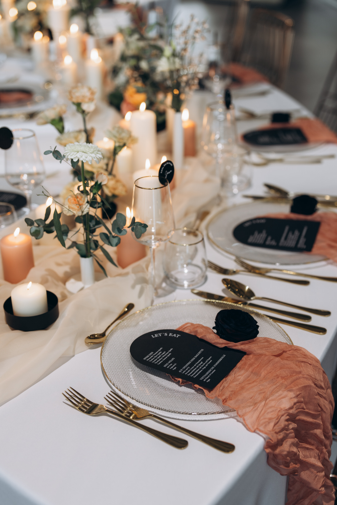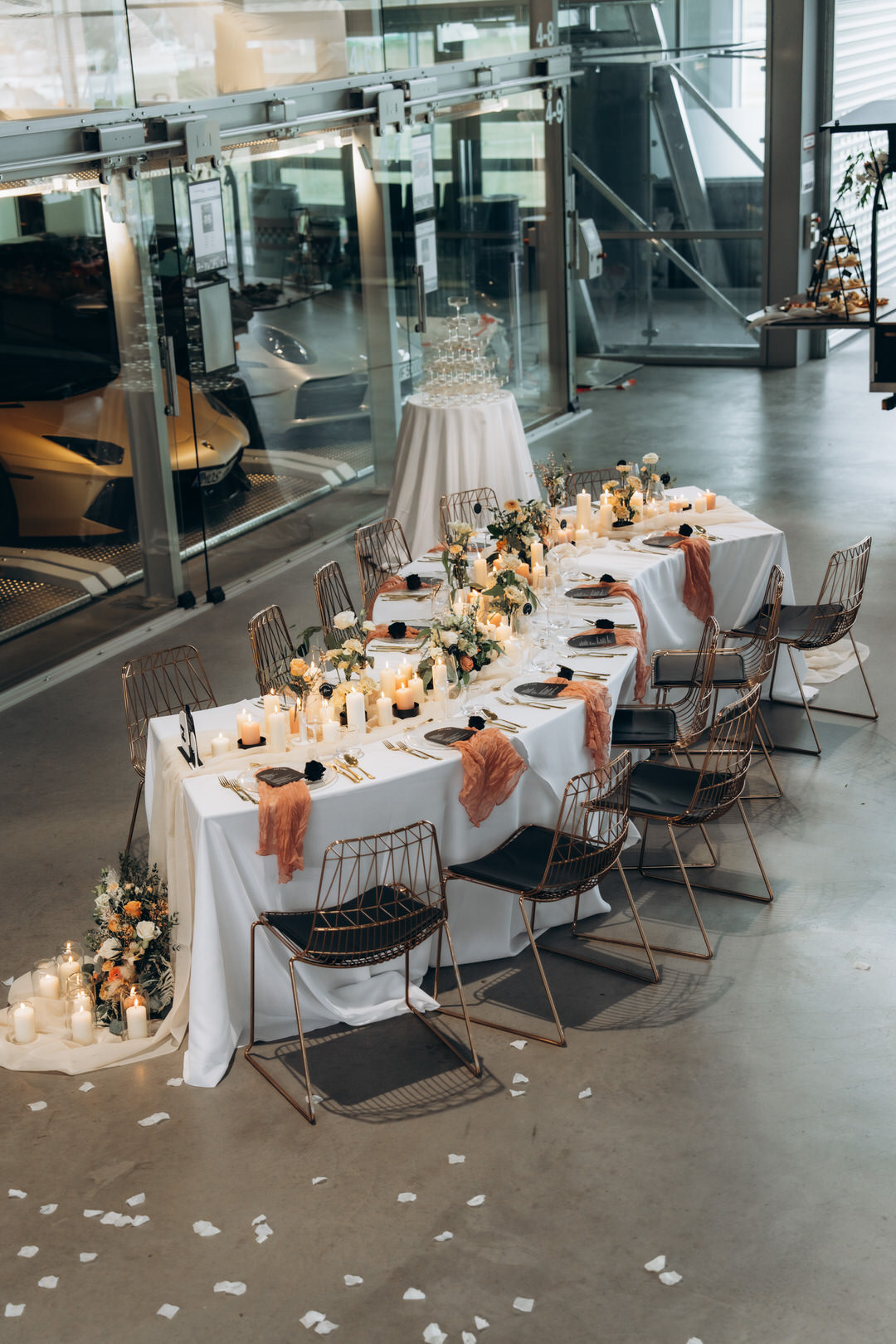Wellentische mit Üppiger Dekoration in Black & Peach – Motorworld Böblingen
