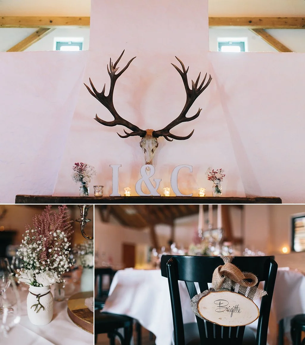 Wenn ein glückliches Brautpaar bereits während dessen Hochzeit und Feierlichkeiten immer wieder auf uns zu kommt und von der Dekoration schwärmt, dann erfüllt uns das mit sehr viel Freude. Eine unvergessliche Hochzeit und ein durch und durch glückliches Brautpaar ist unser Antrieb und unsere Belohnung, so wie auch in diesem Fall :) Diese in Rosa getränkte, mädchenhafte Vintage Hochzeit auf dem Hofgut Maisenburg, besticht durch zarte Pastelltöne, nostalgische Elemente und eine geschmackvoll festliche Stimmung. Als rustikale Begleitung zieht sich eins unserer Lieblingsprodukte durch das Konzept: Holz. Dadurch, und durch das Einbringen anderer Details, wie des Geweihs, wurde dieses Hochzeitskonzept auch einem (kleinen) rustikalen Touch gerecht, der besonders dem Bräutigam wichtig war. Alles in Allem ist der Einfluss der Braut aber nicht zu übersehen, und so entstand eine wahre Märchenhochzeit, die wohl besonders allen Bräuten das Gefühl verleihen dürfte, wie es ist einen Tag Prinzessin zu sein.
